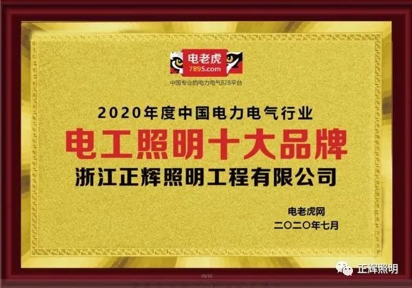 品牌榮譽(yù)!祝賀浙江正輝照明榮膺2020年“電工照明十大品牌”
